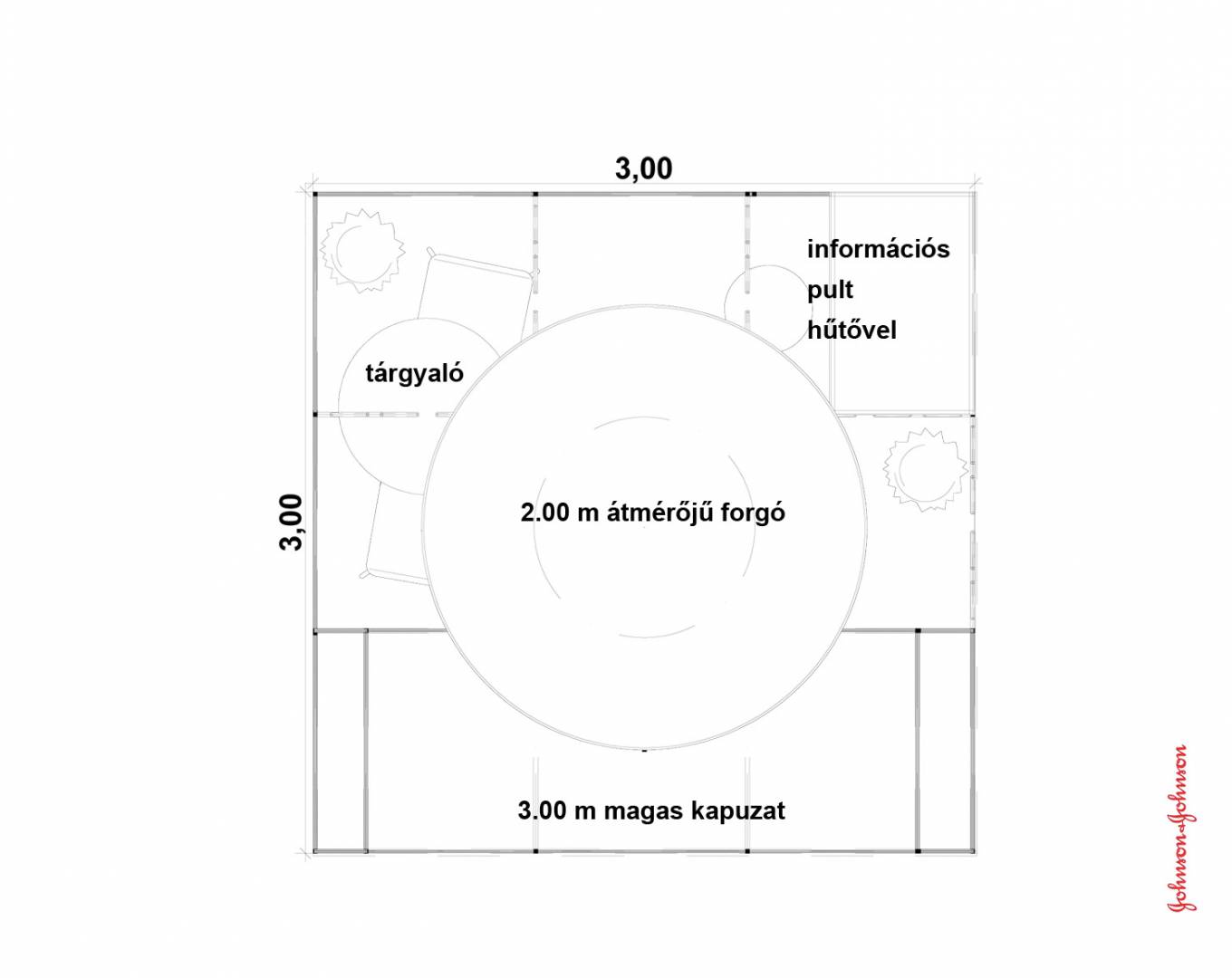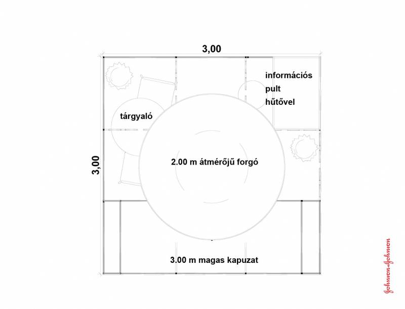A bemutatott stand alapterülete 3 m x 3 m.