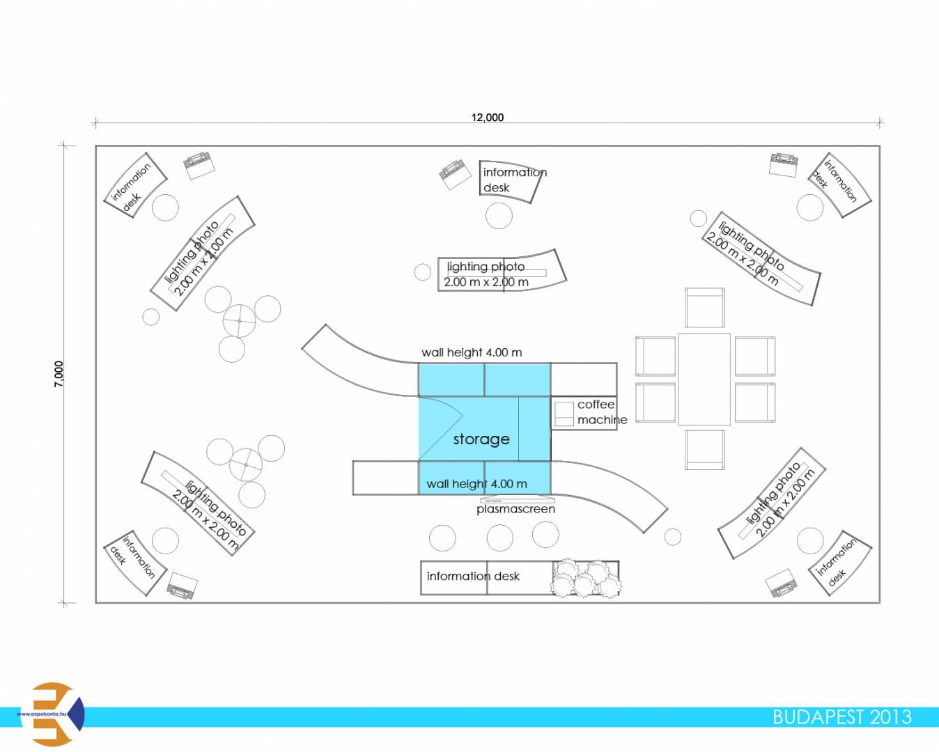 A bemutatott stand alapterülete 10 m x 12 m.